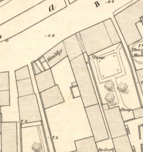 The precise location of the Burnside Brewery is unclear as it is described in valuation rolls as simply being east of the wynd at 14 Burnside. A smithy was close by so it may be the complex of buildings to the west of what is now the Cupar Arms.