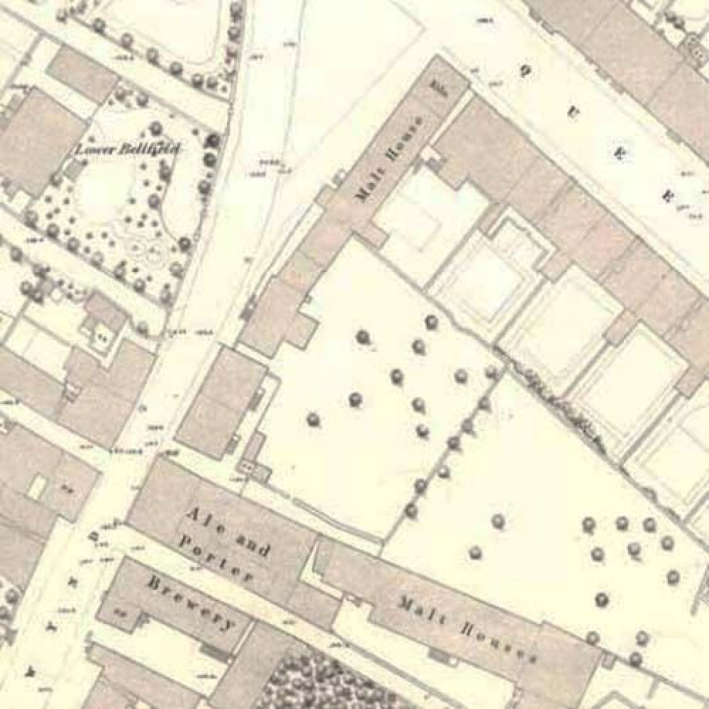 The Stirling Brewery, also referred to as Burden's Brewery, gradually expanded to become an extensive complex of buildings at the top of Irvine Place, with water being drawn from wells sunk on the premises.