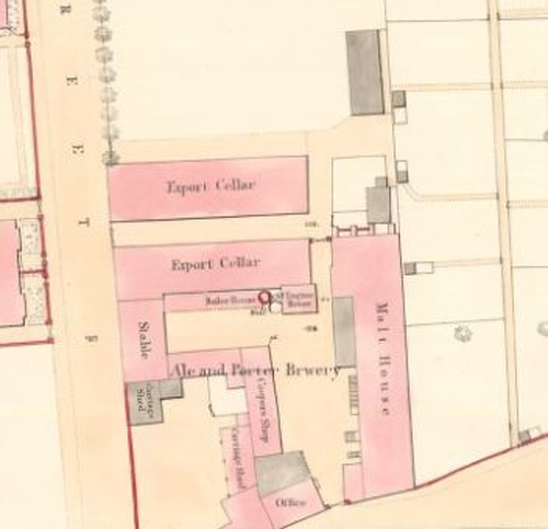 The new Falkirk Brewery was established by James Aitken & Co on land across the road from the original brewery on Newmarket Street. The brewery was expanded in 1866 and 1878, and then reconstructed over the period 1898 to 1900 to a design by Peter Lyle Henderson.