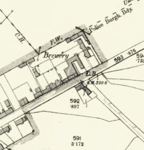 The Strathearn Brewery consisted of a group of linked buildings arranged around three sides of a courtyard. The site has since been cleared and is awaiting development.